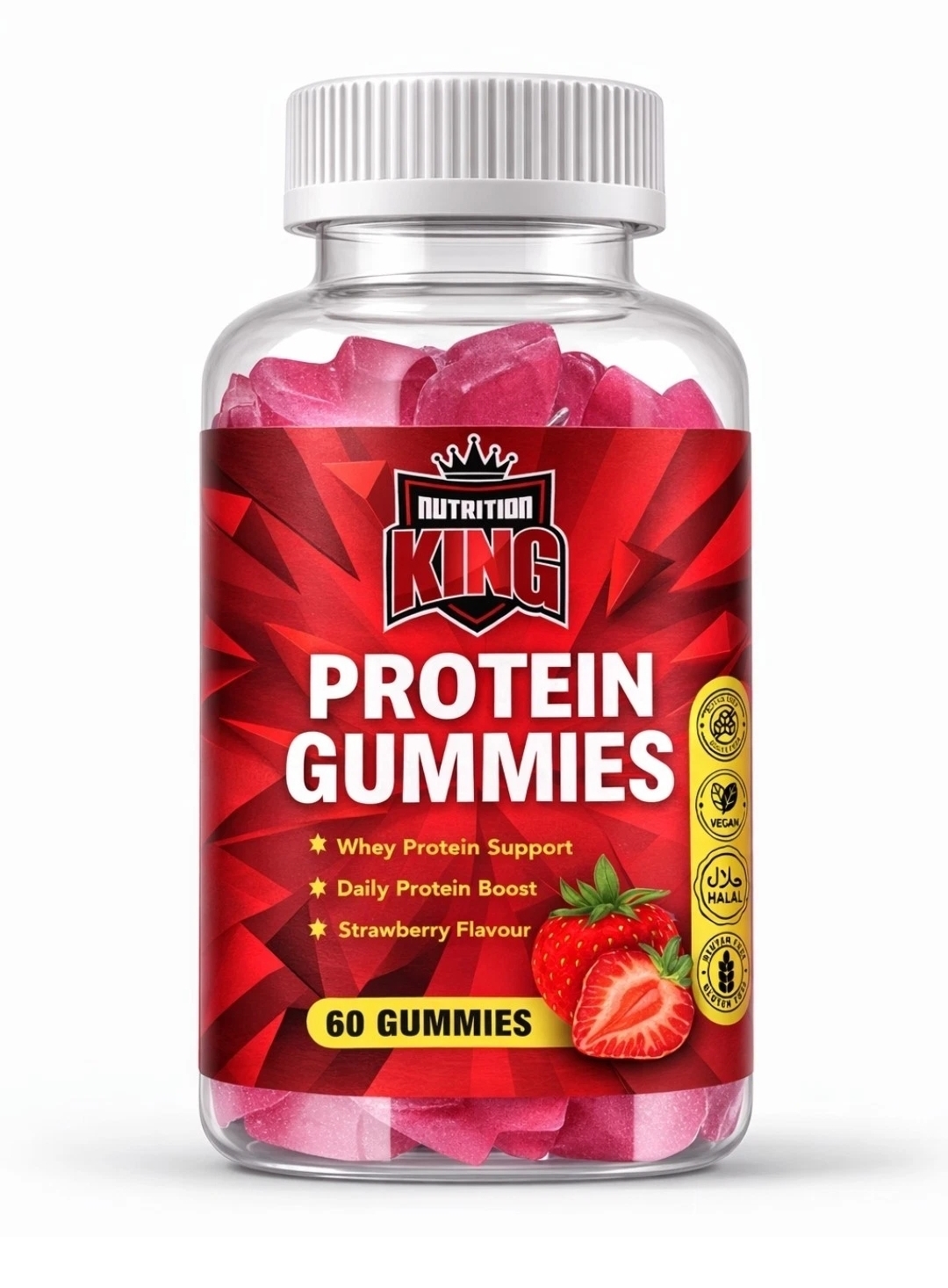 Boost your daily protein intake the easy way with these Nutrition King Protein Gummies. These tasty strawberry flavour gummies provide a convenient alternative to traditional protein powders or shakes.